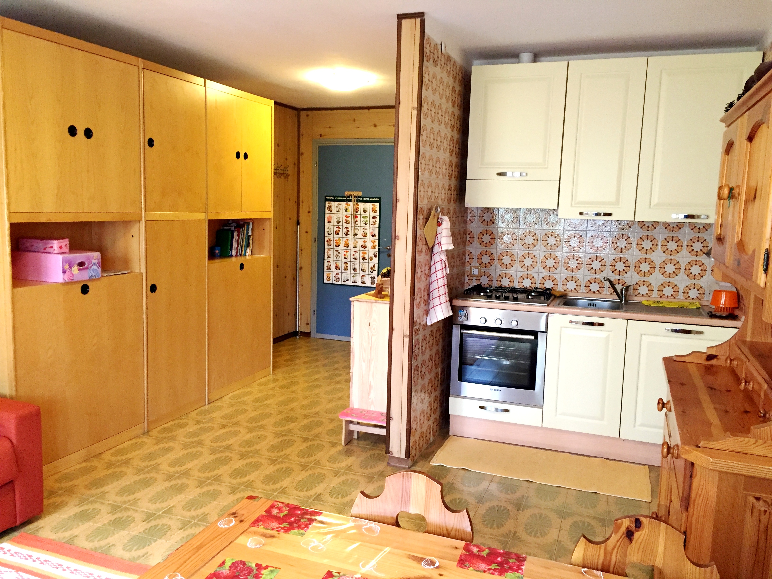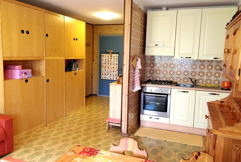 MONOLOCALE COMPOSTO DI SOGGIORNO CON ANGOLO COTTURA, BAGNO, STIPETTO PORTA SCI, POSTO AUTO COPERTO.