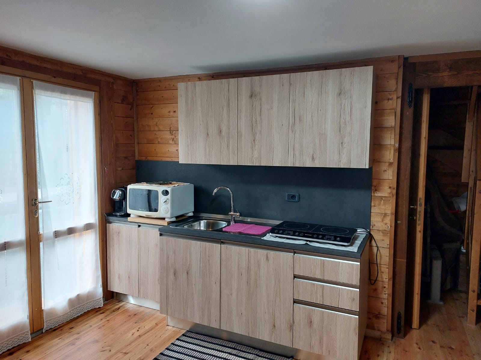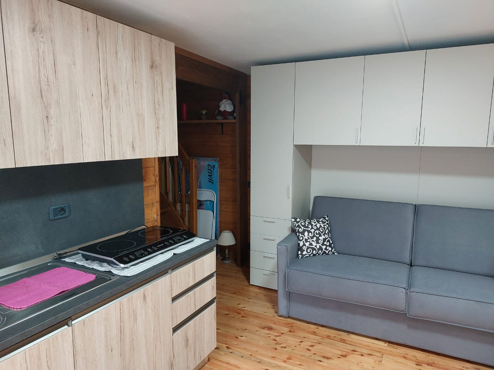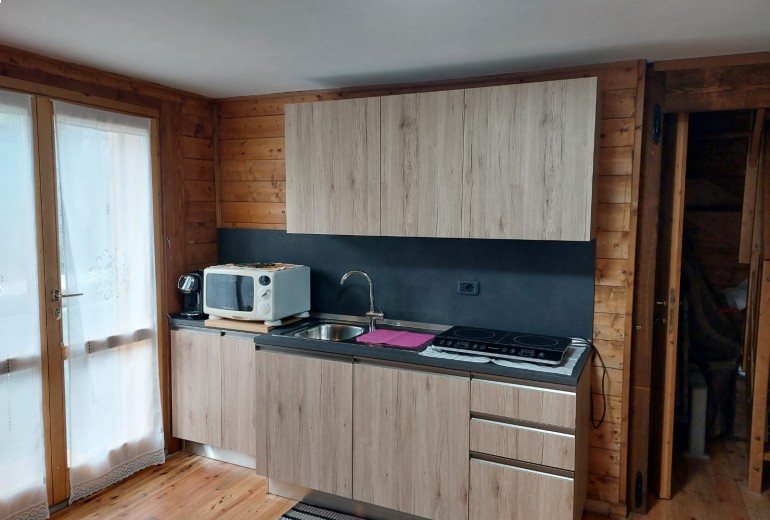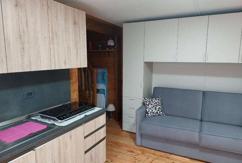 al primo livello: soggiorno con angolo cottura, camera matrimoniale, bagno finestrato e balcone;