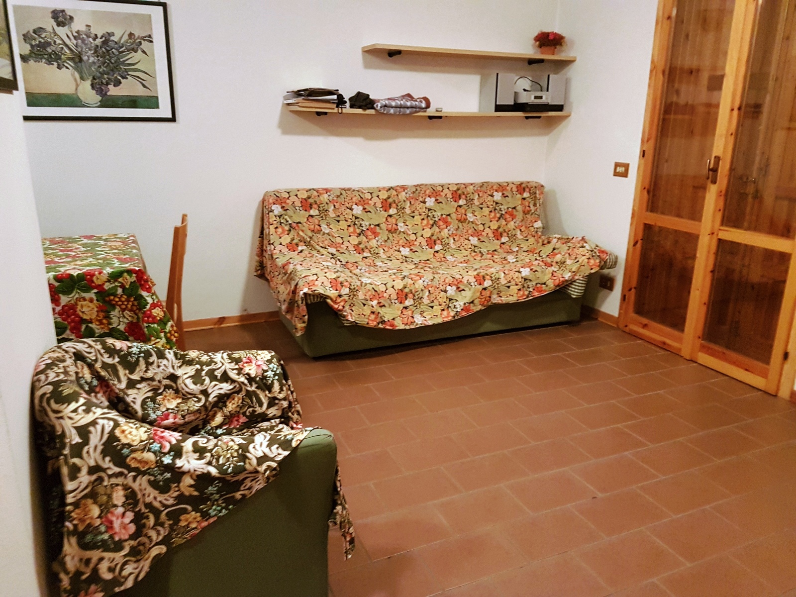 Soggiorno con angolo cottura, camera matrimoniale, cameretta con due letti a castello, bagno e balcone.
